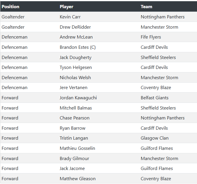 - Four defencemen hit 10+ points, led by Jere Vertanen (13.0).